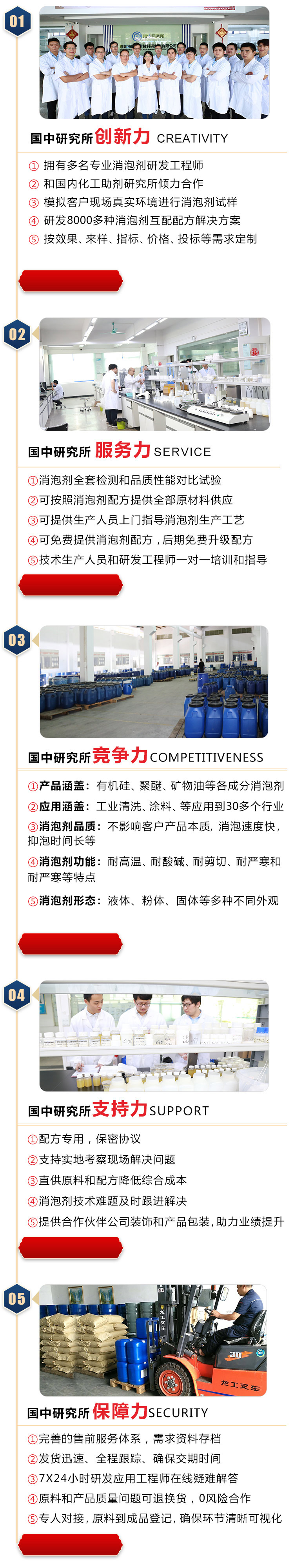 東莞市國中新材料研究所有限公司是一家集科研、生產、銷售、服務于一體的新材料研究所,擁有3000平方的研發基地,擁有一支專業消泡劑研究人員組成的研發團隊。成立以來一直致力于消泡劑原材料、成品的開發以及客戶技術服務,長期與國內研究所合作研發消泡劑配方。